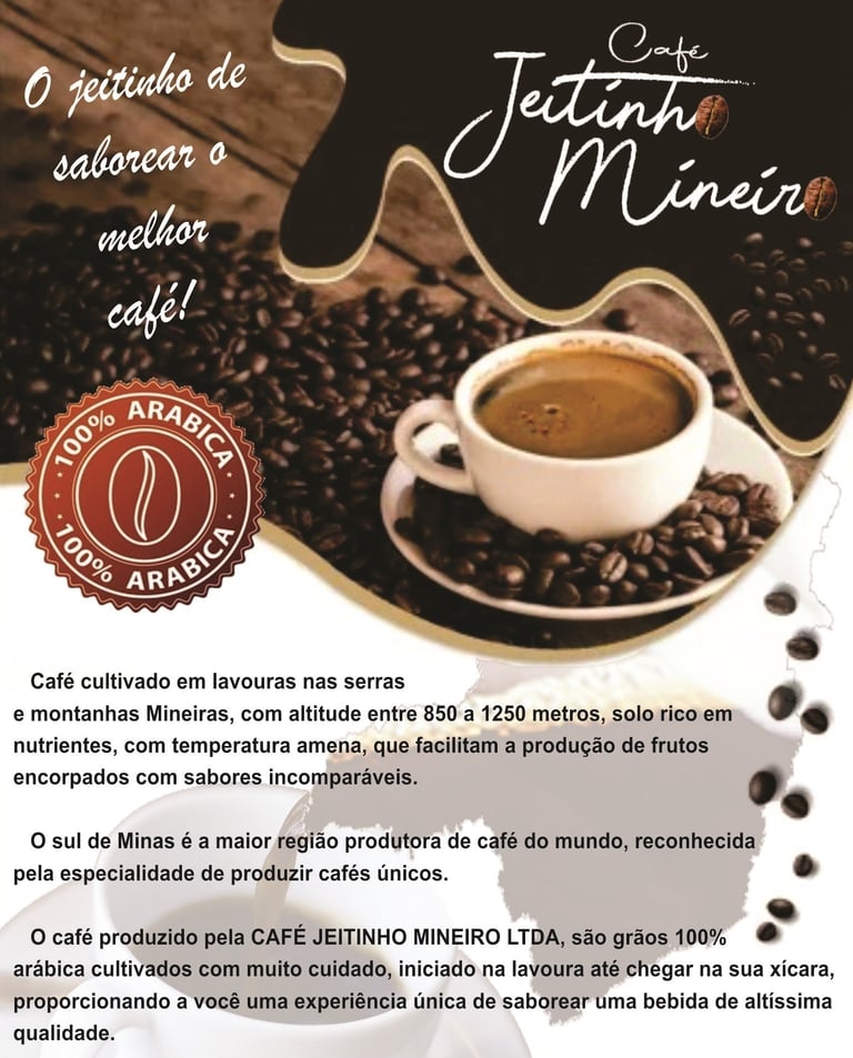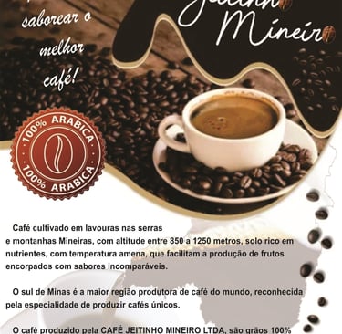 A Café Jeitinho Mineiro Ltda é uma empresa familiar dedicada à produção de café. Nós torramos, moemos, envasamos e enviamos diretamente para o consumidor final um café de altíssima qualidade. Nosso café é torrado e moído, e também oferecemos a opção de grãos inteiros para máquinas de expresso. Estamos comprometidos em proporcionar a melhor experiência de café para nossos clientes, garantindo um sabor e aroma excepcionais em cada xícara. Nosso processo de produção é cuidadosamente supervisionado e realizado por profissionais especializados, resultando em um produto final de excelência. Valorizamos a tradição e a cultura mineira do café, e estamos orgulhosos de compartilhar com nossos clientes essa tradição através de nosso café irresistível.
